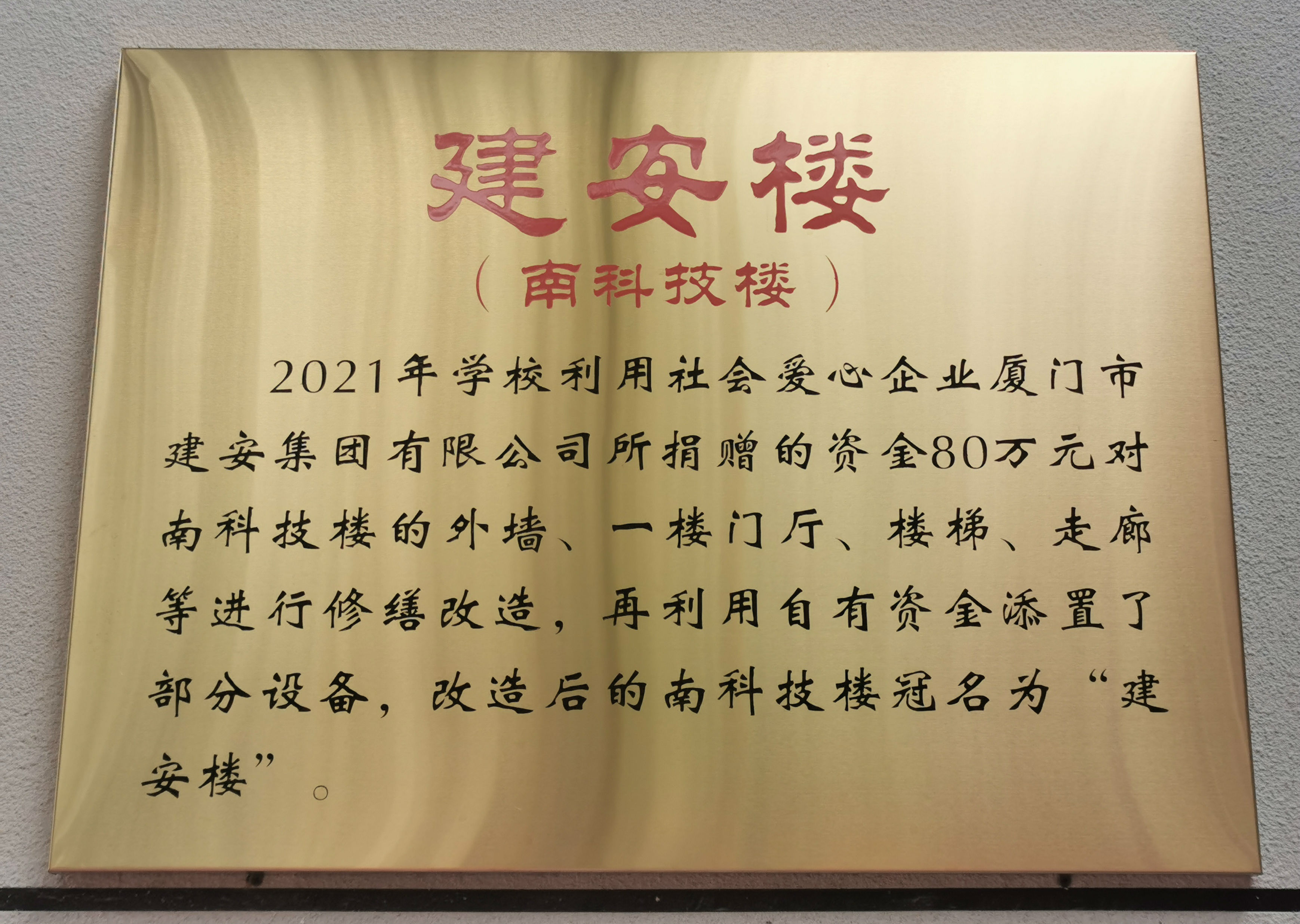 2022年 9月1日上午,三明市第二中學建安樓揭牌儀式隆重舉行。三明市委教育工委書記、市教育局黨組書記劉若嘉,市政協(xié)教科衛(wèi)體委員會主任于修芹,市教育局黨組成員、校黨總支書記、校長伊永河,副校長陳少清、謝華文、吳文勝、羅世余、劉新明,校黨總支副書記、工會主席李似麒,廈門建安集團董事長孫碧慶,工會主席、副總經(jīng)理曾怡航等出席活動。