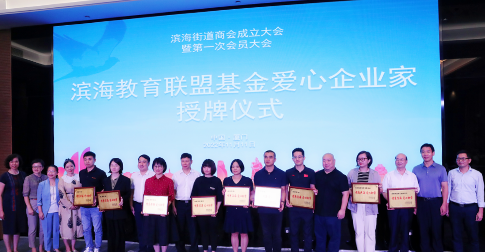 大會(huì)最后,廈門建安集團(tuán)等9家企業(yè)及基金會(huì)獲頒濱海教育聯(lián)盟基金愛(ài)心企業(yè)家獎(jiǎng)牌。